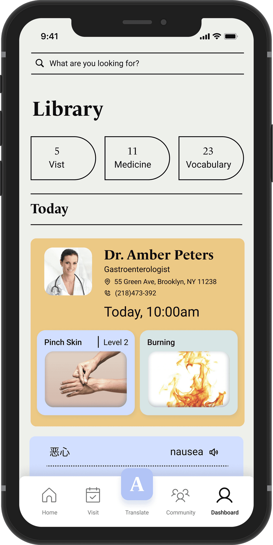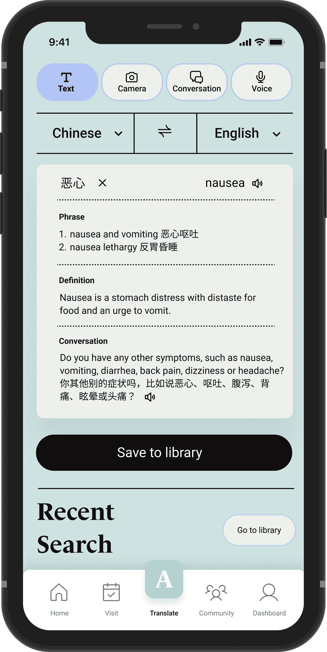 When users encounter unfamiliar medical terms, they can use translation tools to help understand and communicate.