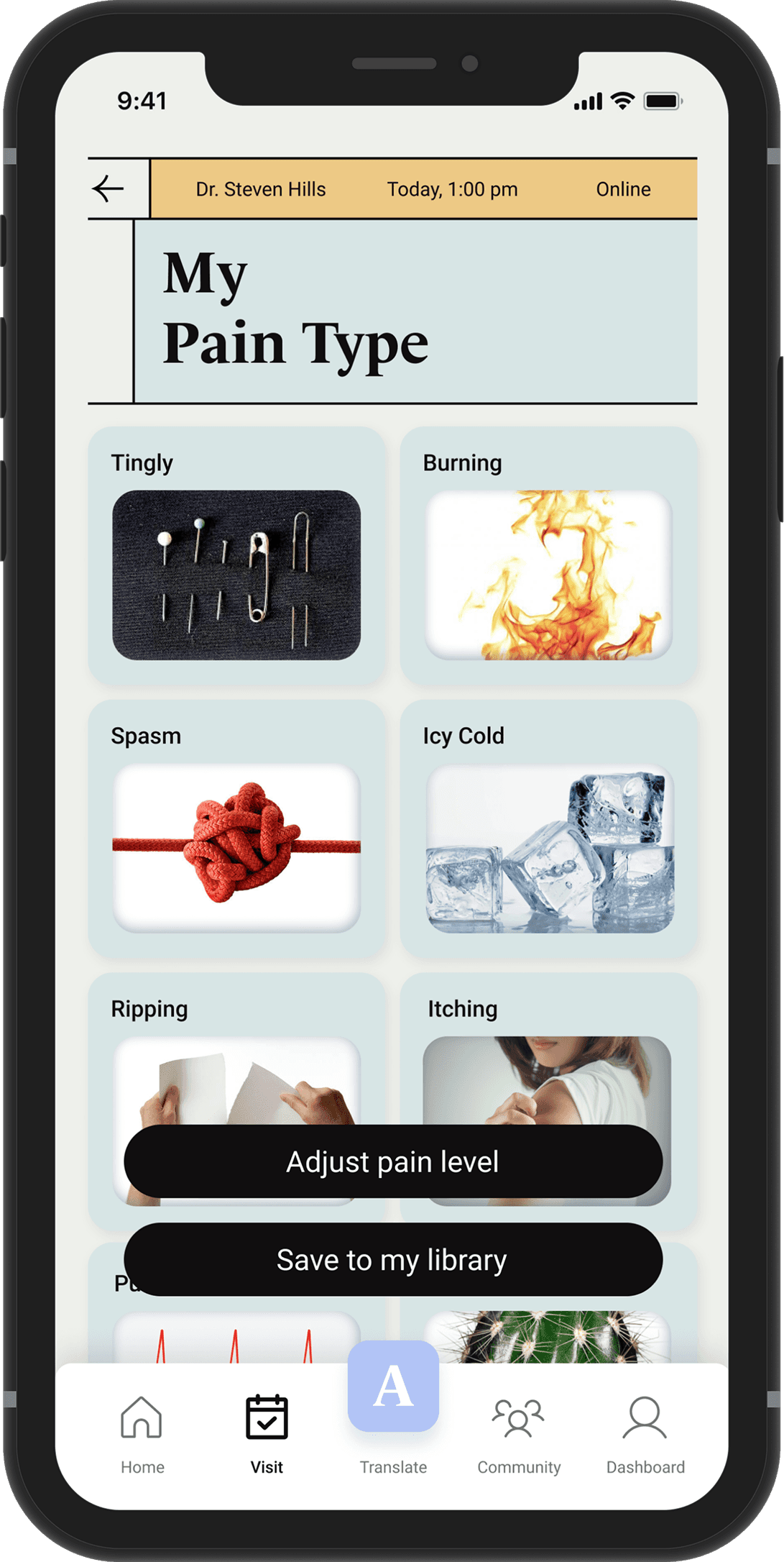 When users find it difficult to describe pain, they can use Pain Level and Pain Type to assist in communicating with doctors.
