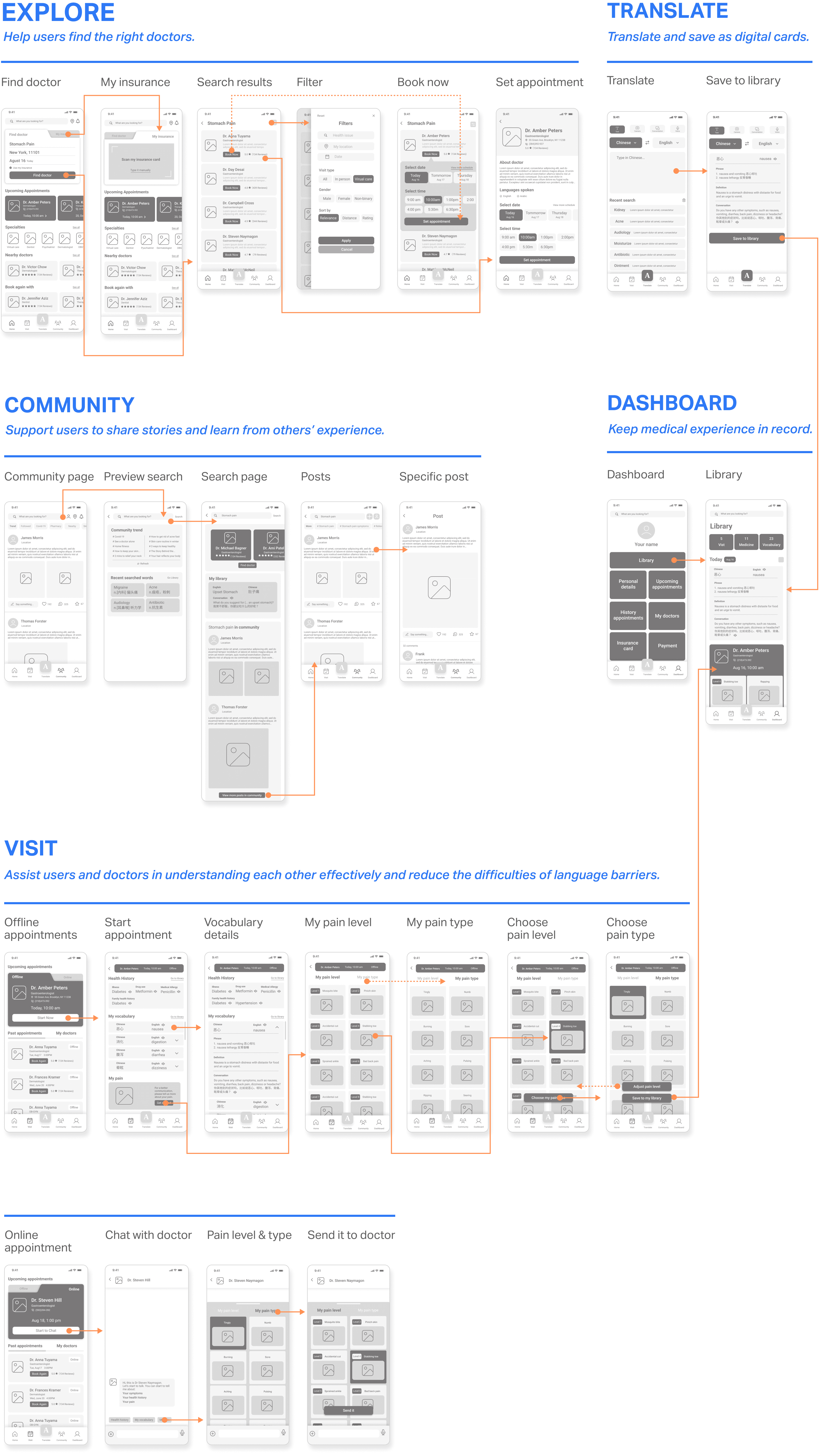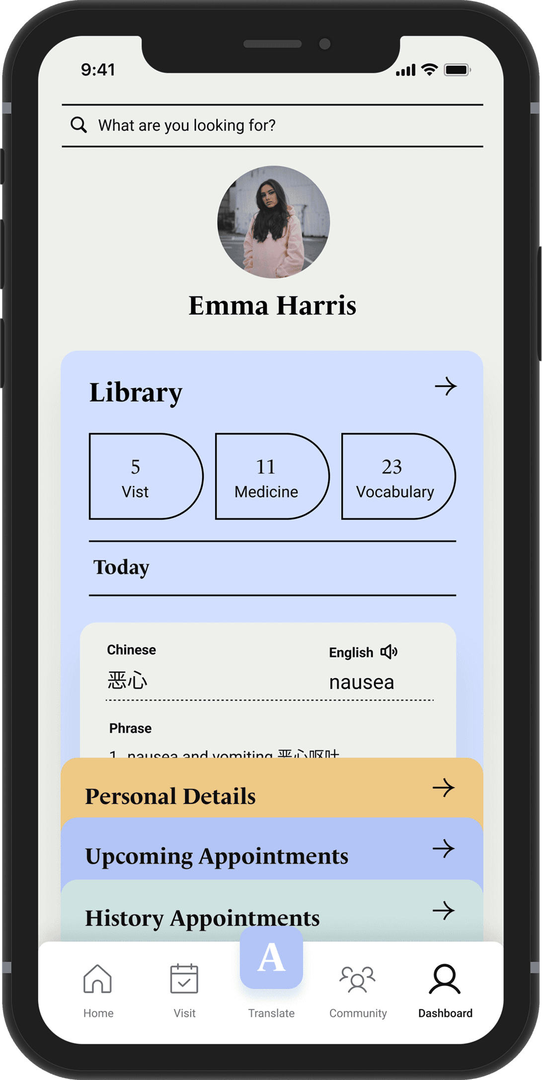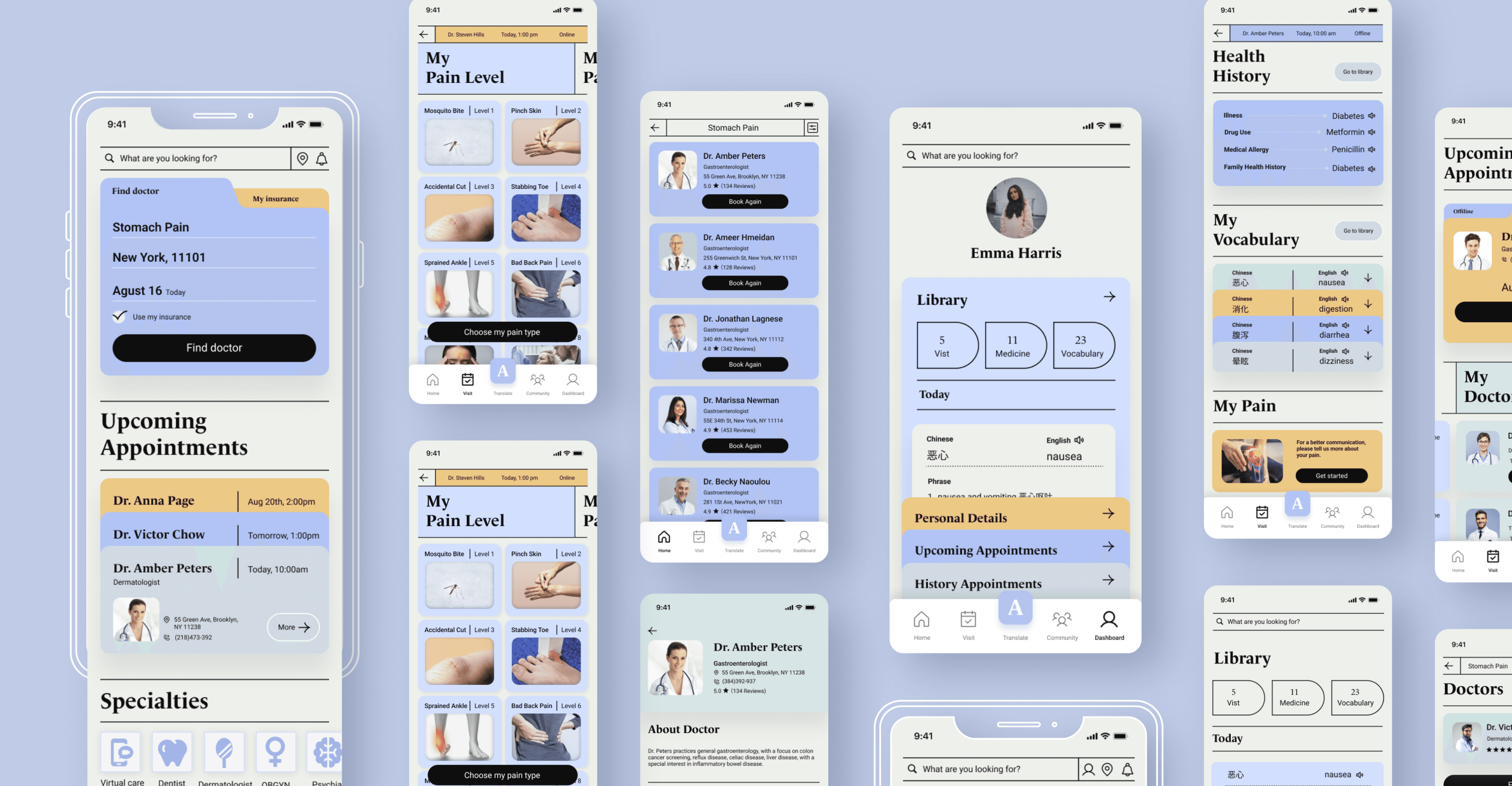 Emma is an international student from China studying in New York. She isnβt familiar with the U.S. medical system. After struggling with a headache for a week, she decides to see a doctor. However, it's difficult for her to find a nearby doctor covered by her health insurance. She also faces challenges communicating her symptoms. As a result, she often feels unconfident and frustrated throughout the medical visit process.
