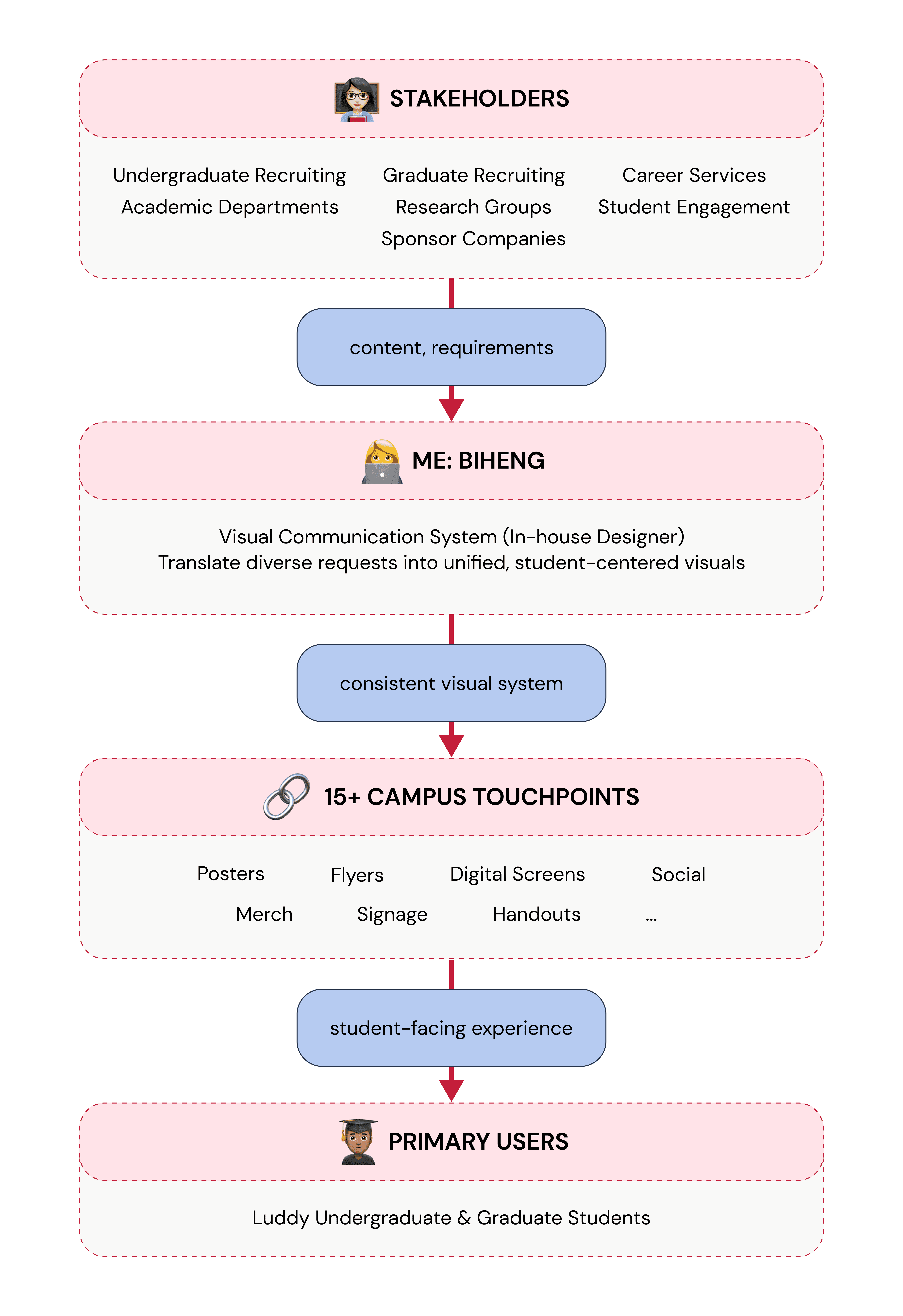 Each team/department produced visual materials independently. The result was an inconsistent ecosystem that made it harder for students to understand and act on information.