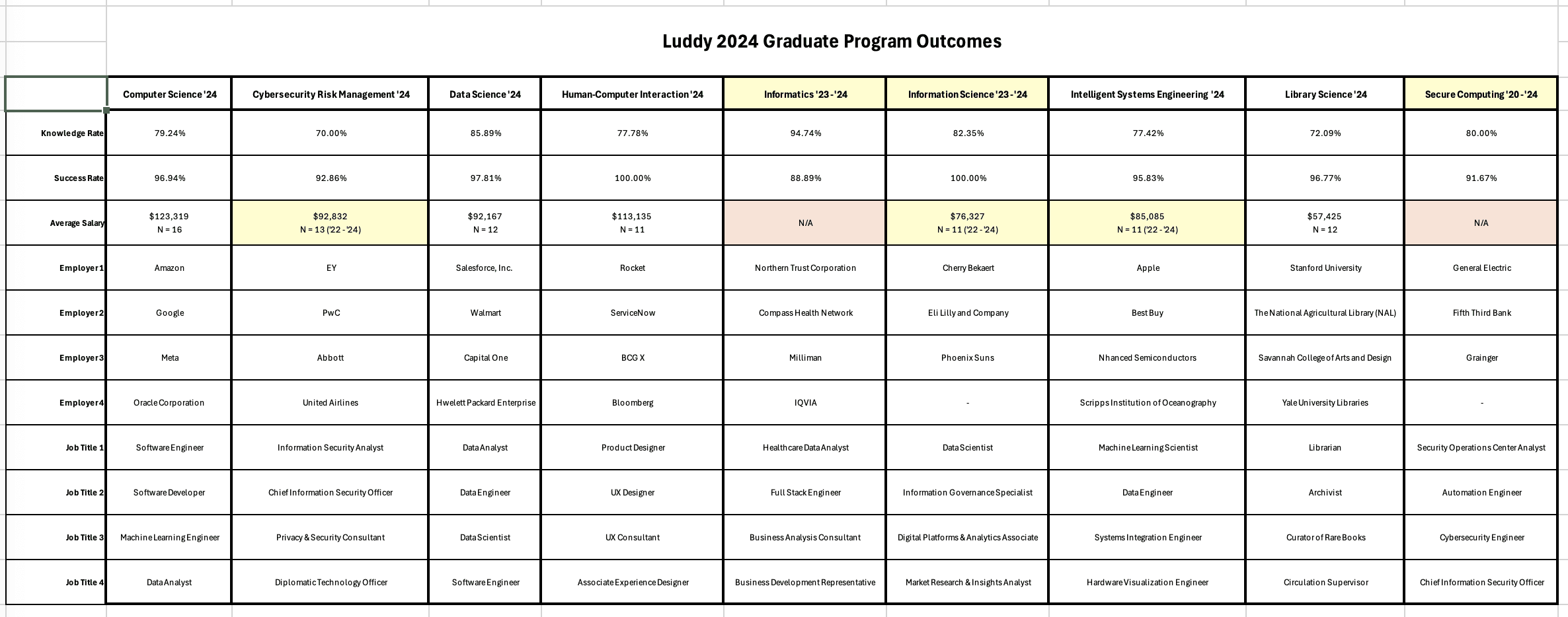 Career Services provided salary, outcome, and job title data for each major with no clear priority or visual system.