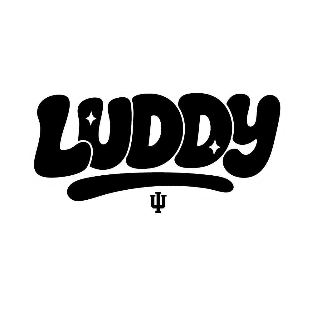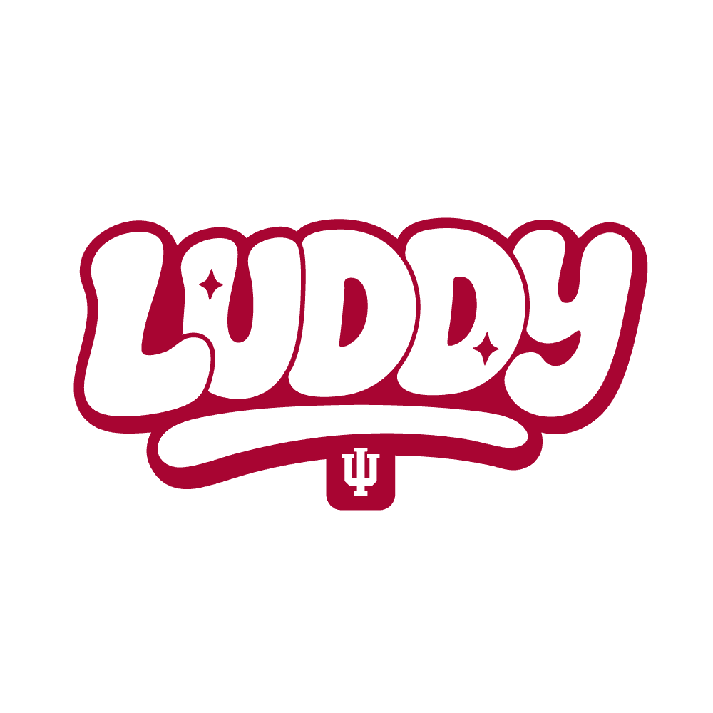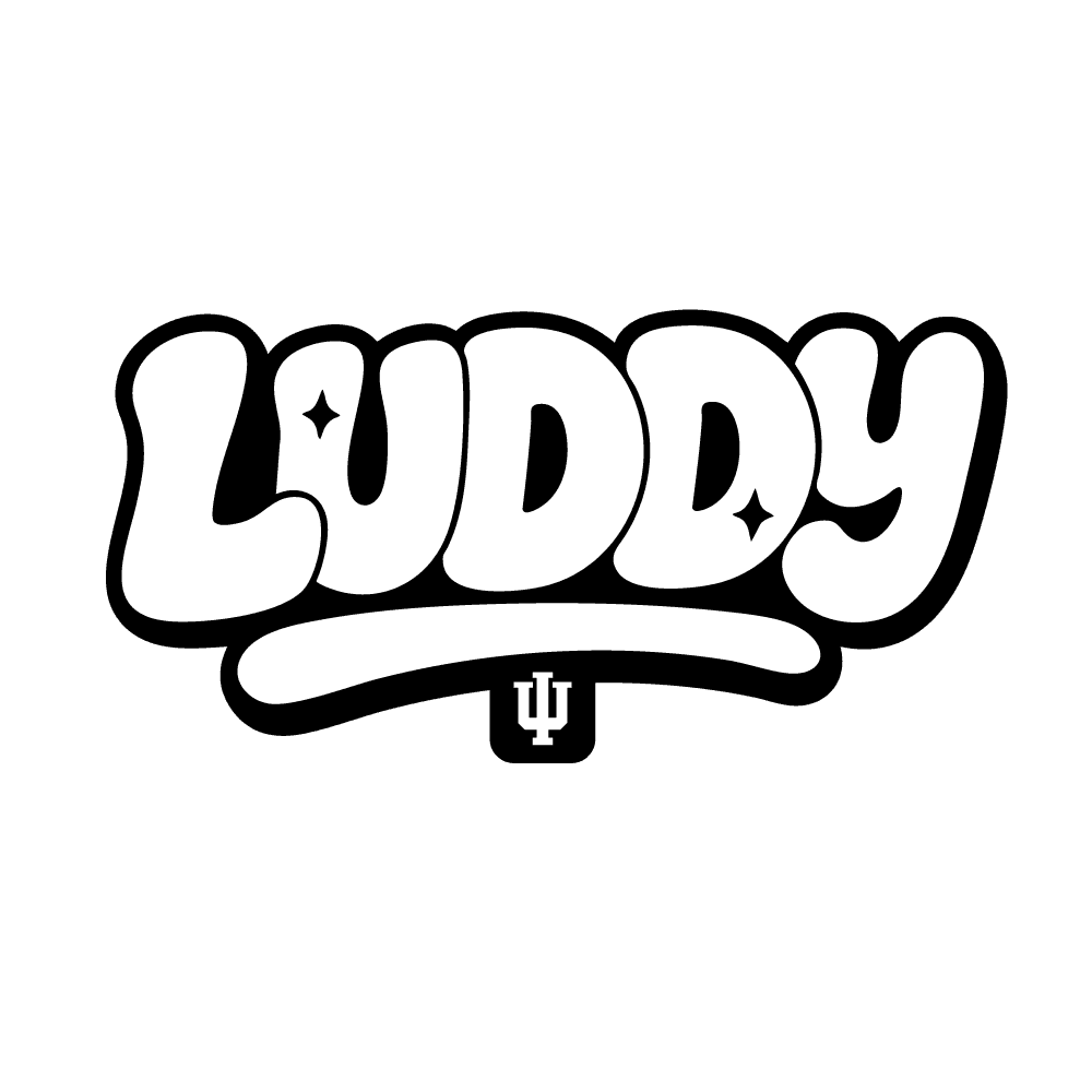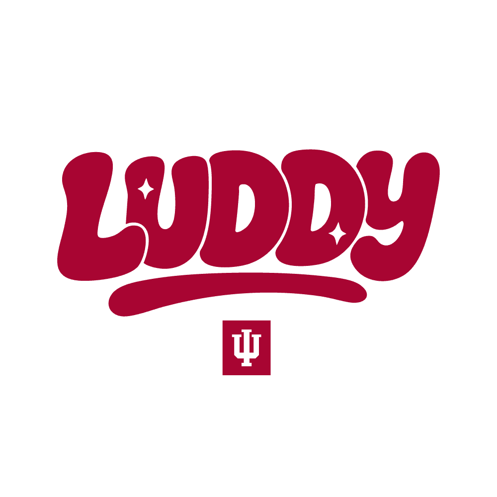 I created a custom bubble letter logotype that captures Luddy’s energetic and approachable identity. The goal was to design a mark that feels expressive enough for student merch while still recognizable as part of the school’s brand.