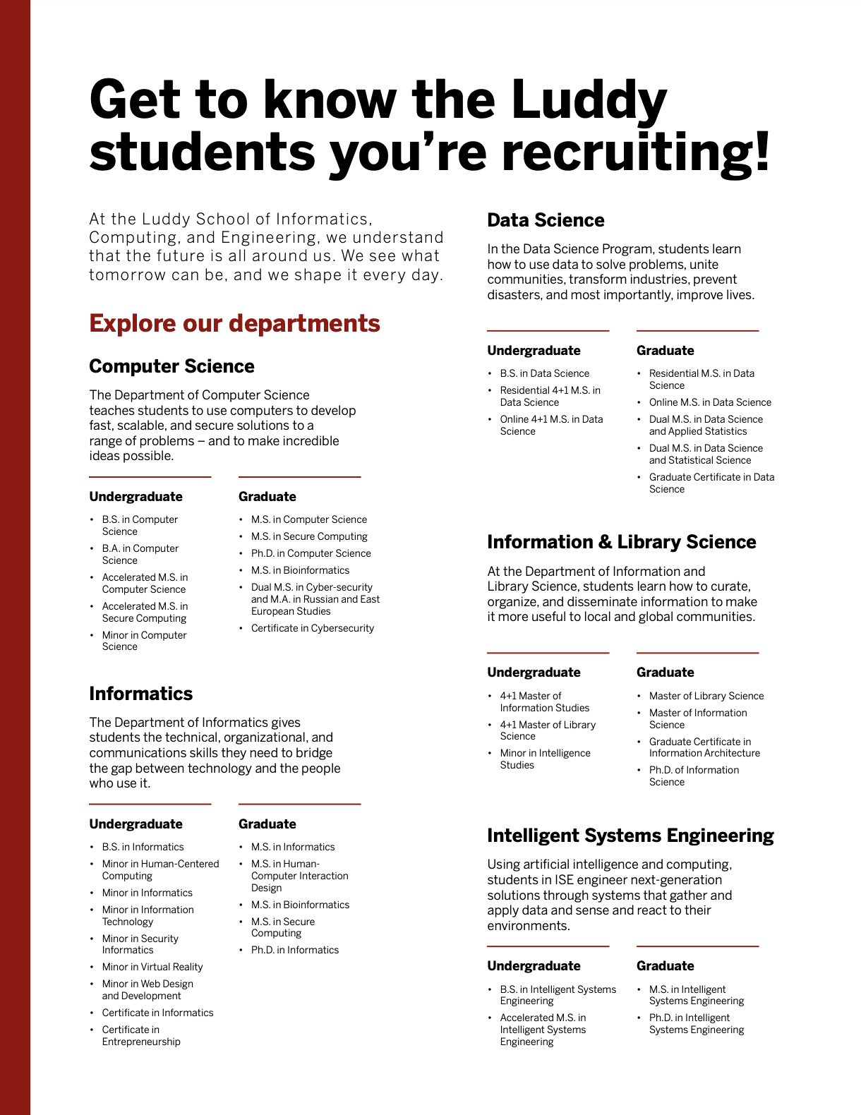 As a school within Indiana University Bloomington, Luddy communicates a high volume of student-facing information across many channels every semester.