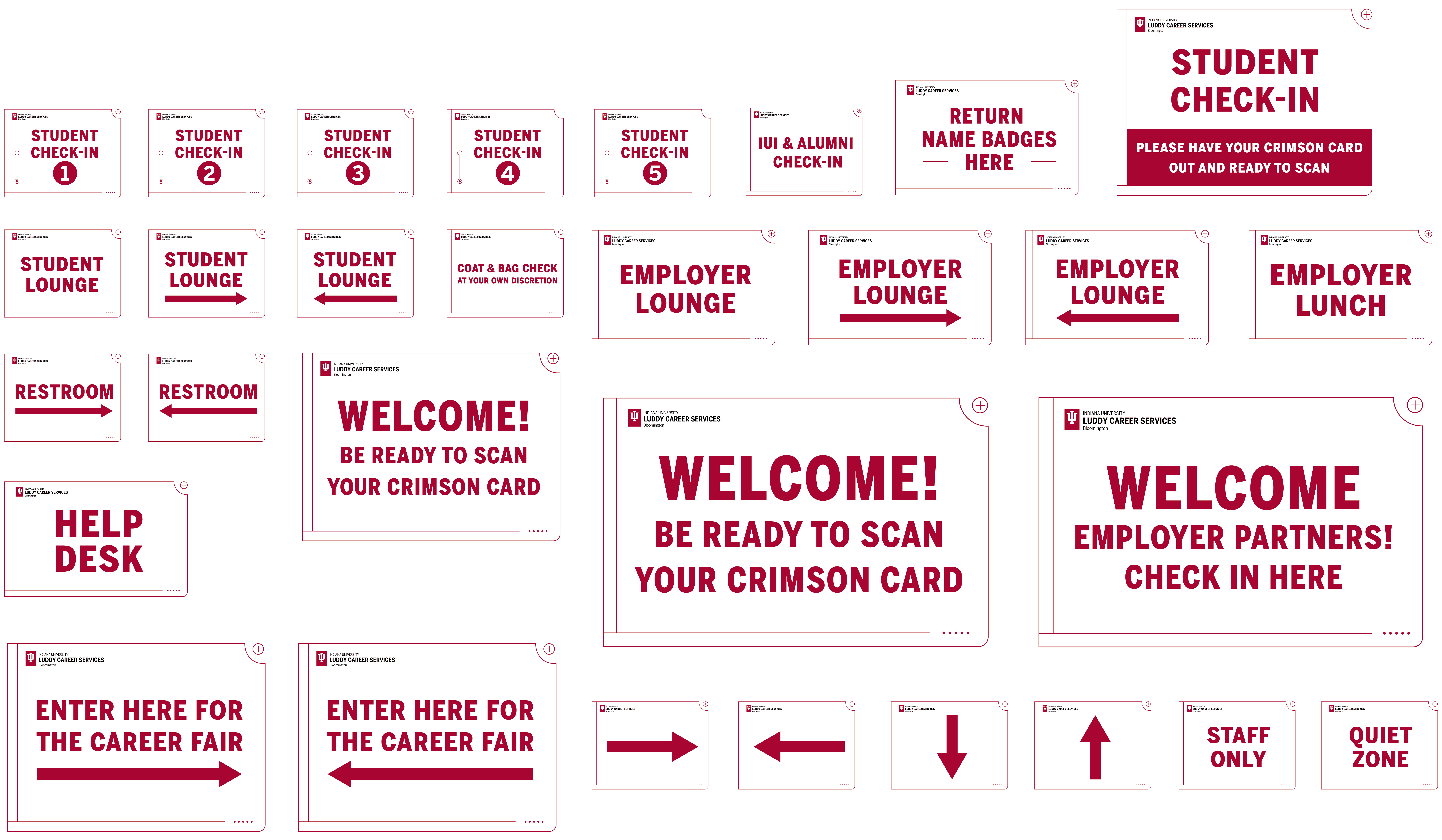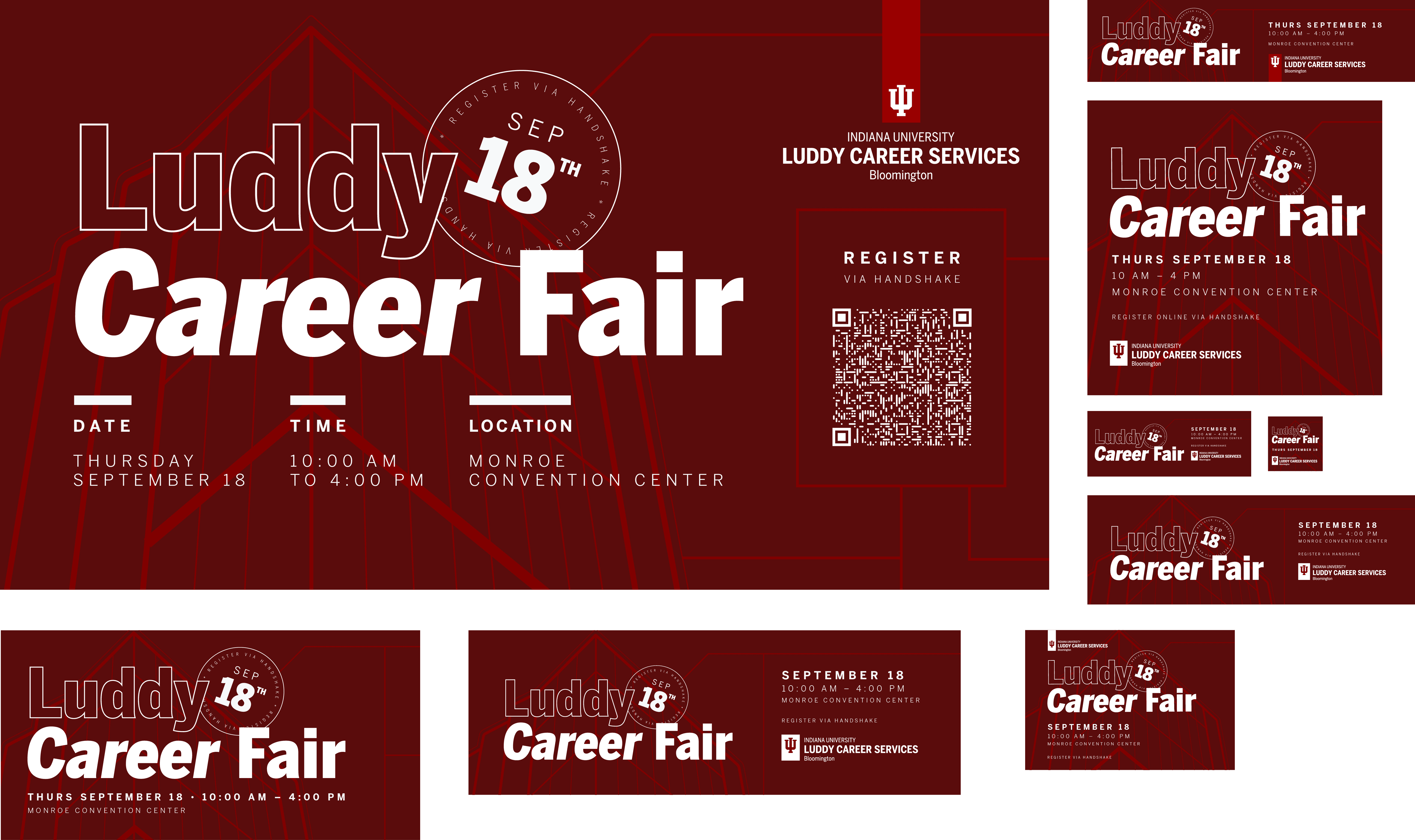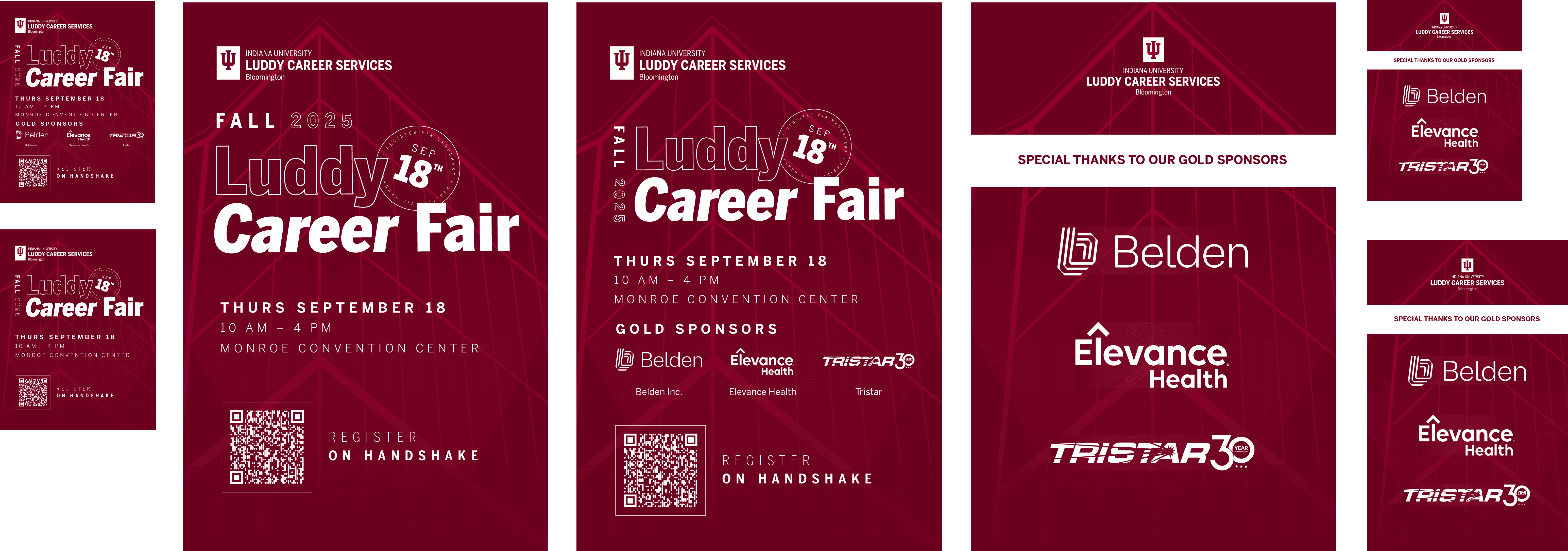 The event required many formats (poster, digital screens, social, recruiter guide), each with different size and readability constraints.
