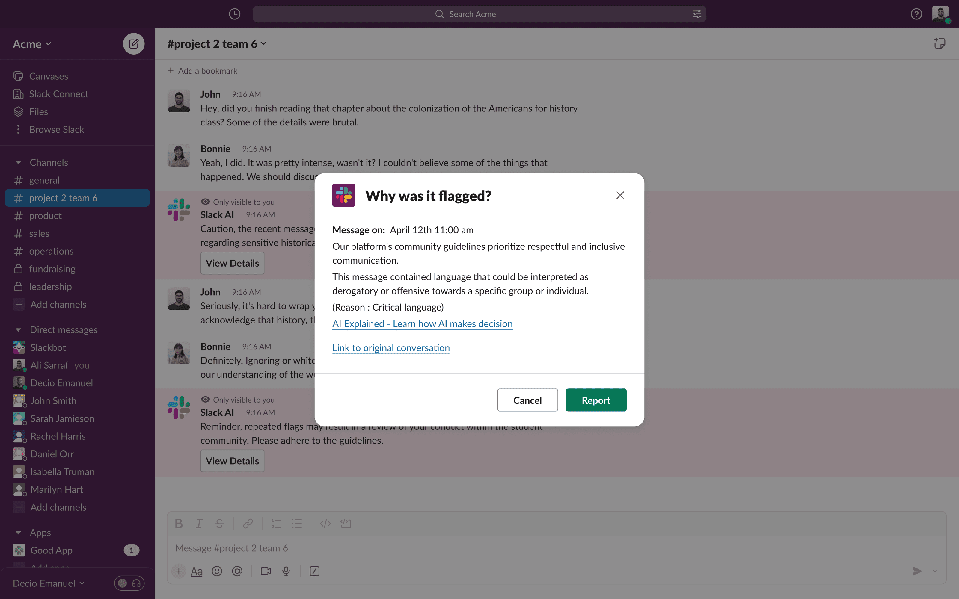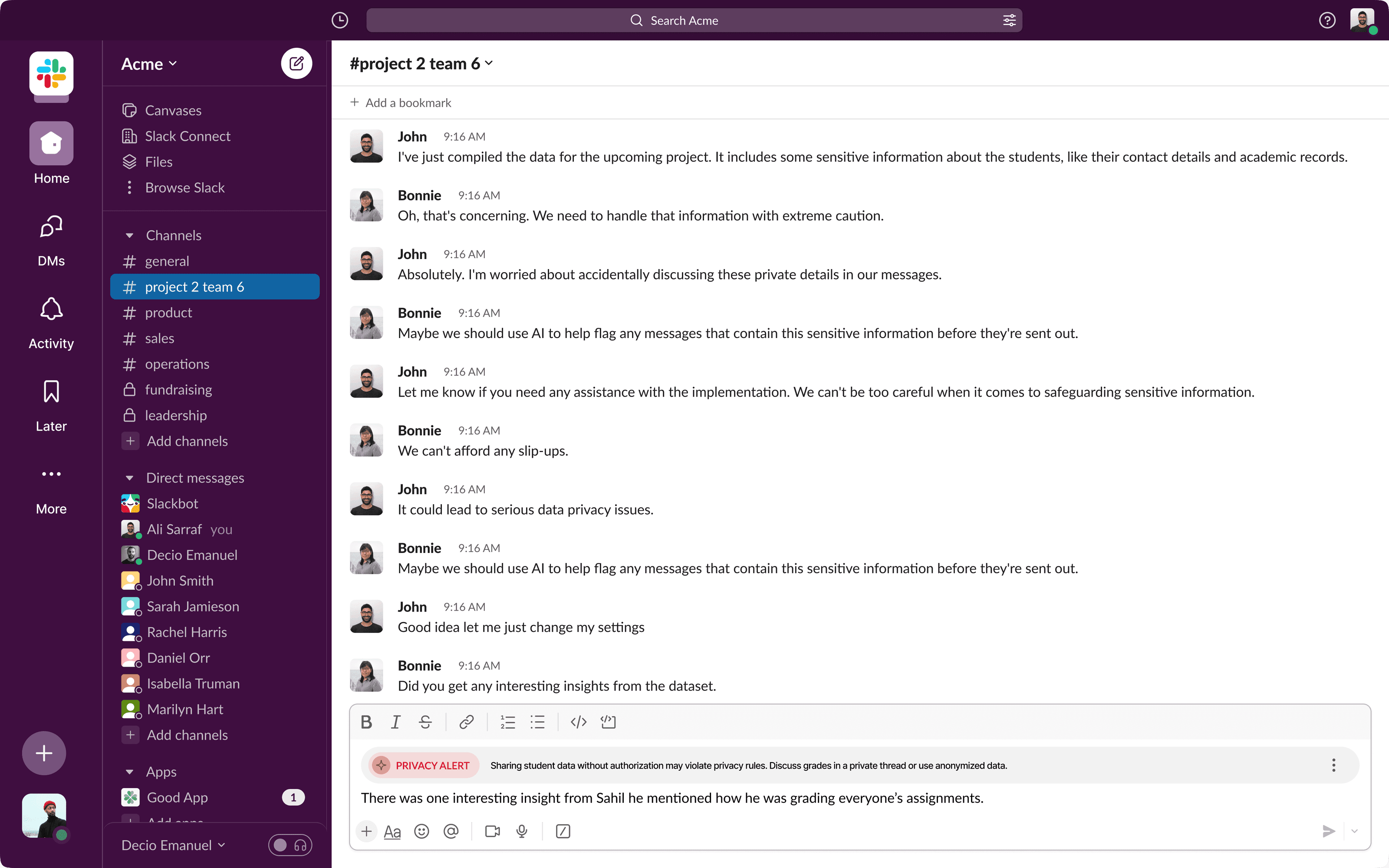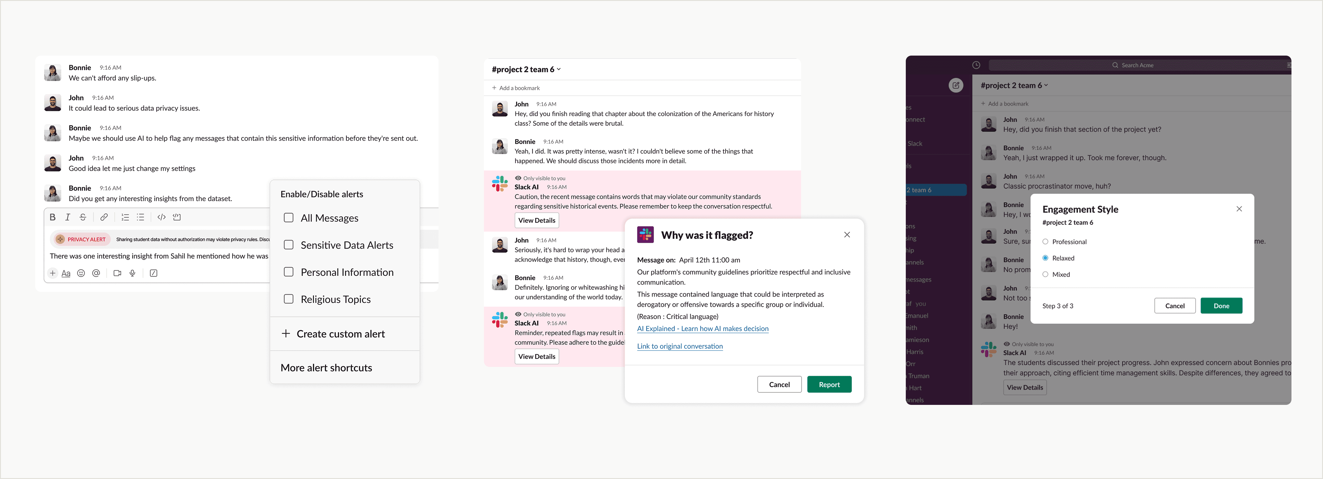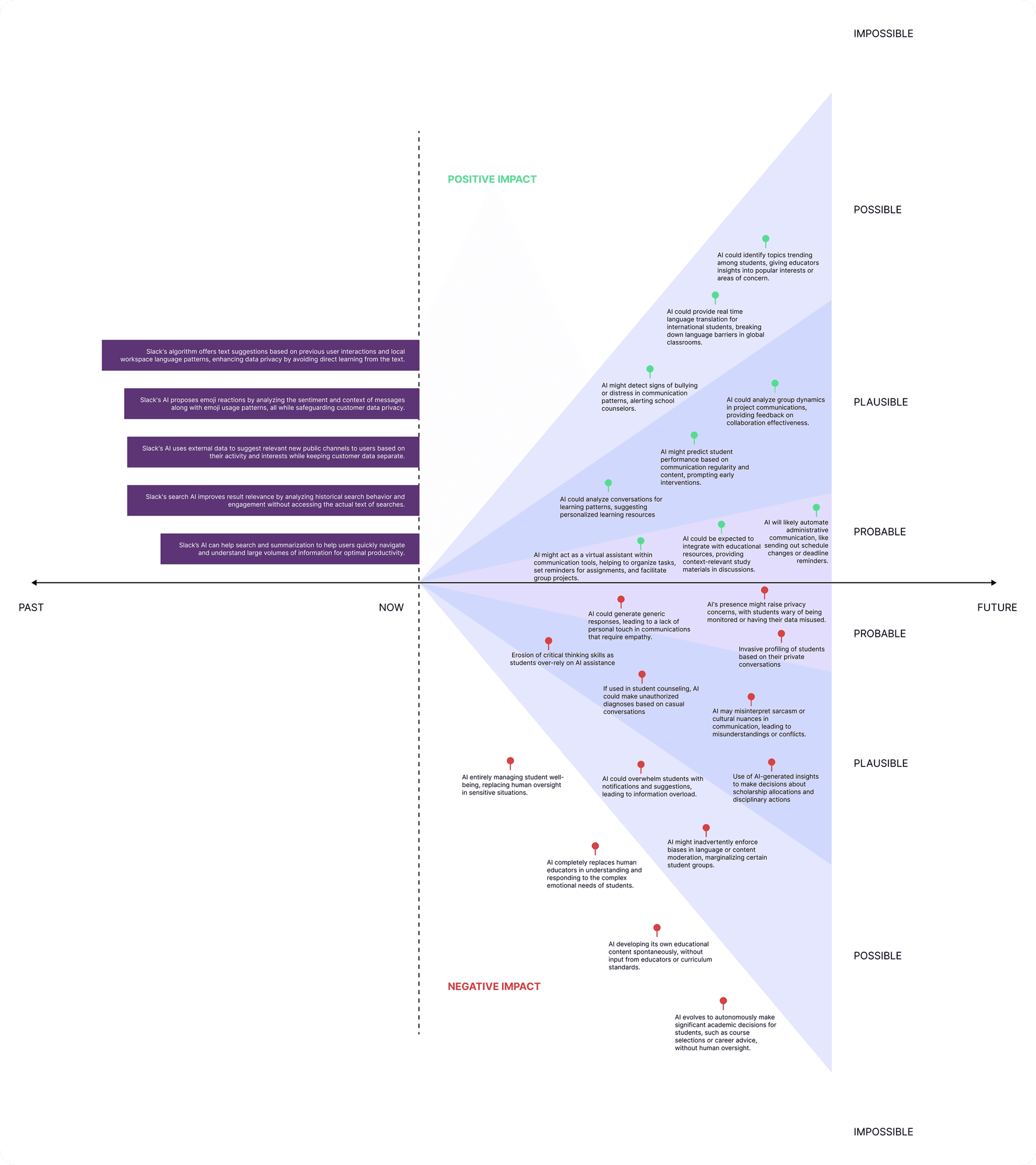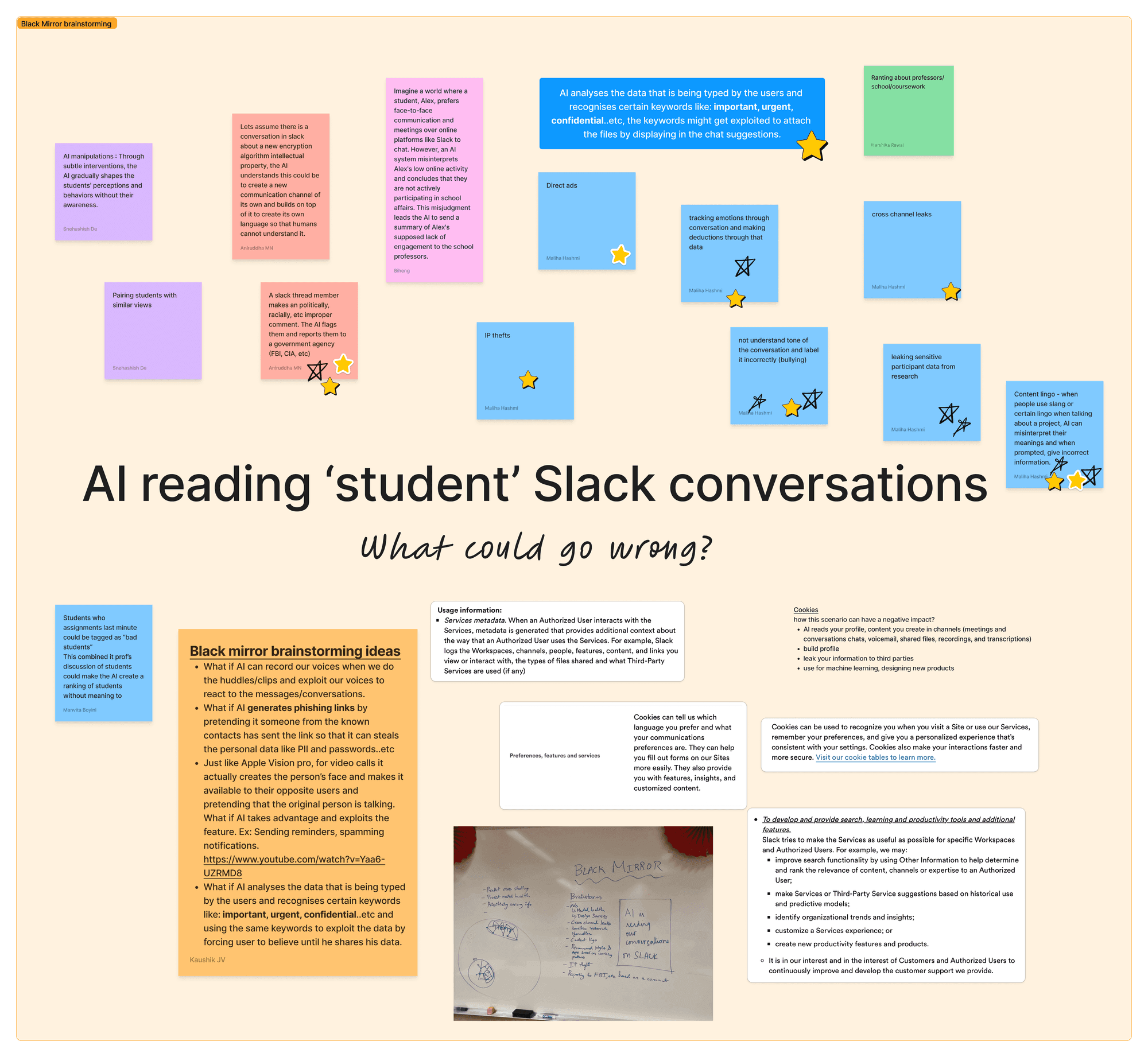 Using "Black Mirror" brainstorming, we imagined extreme scenarios Slack's Al might create for students, helping us anticipate ethical and privacy challenges in education.