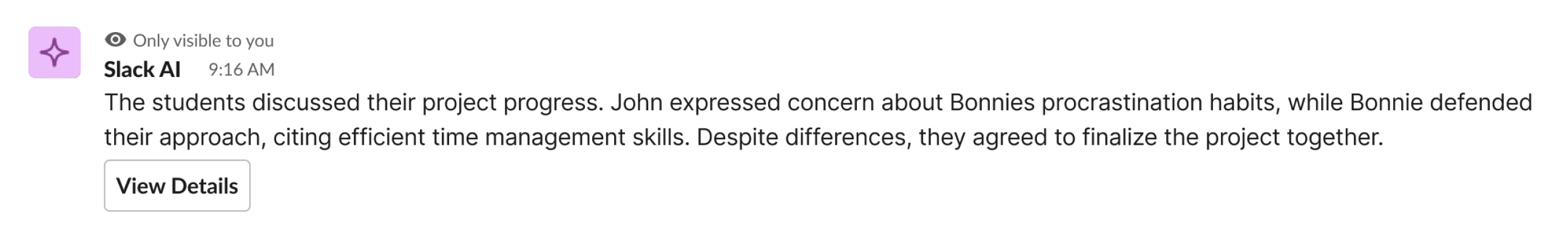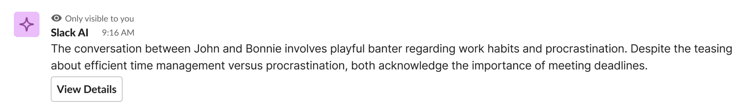 Slack AI brings generative intelligence to everyday workflows, helping teams summarize conversations, find answers, and stay aligned, within the tools they already use.